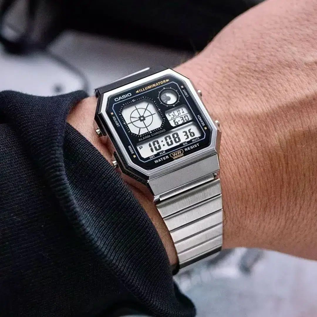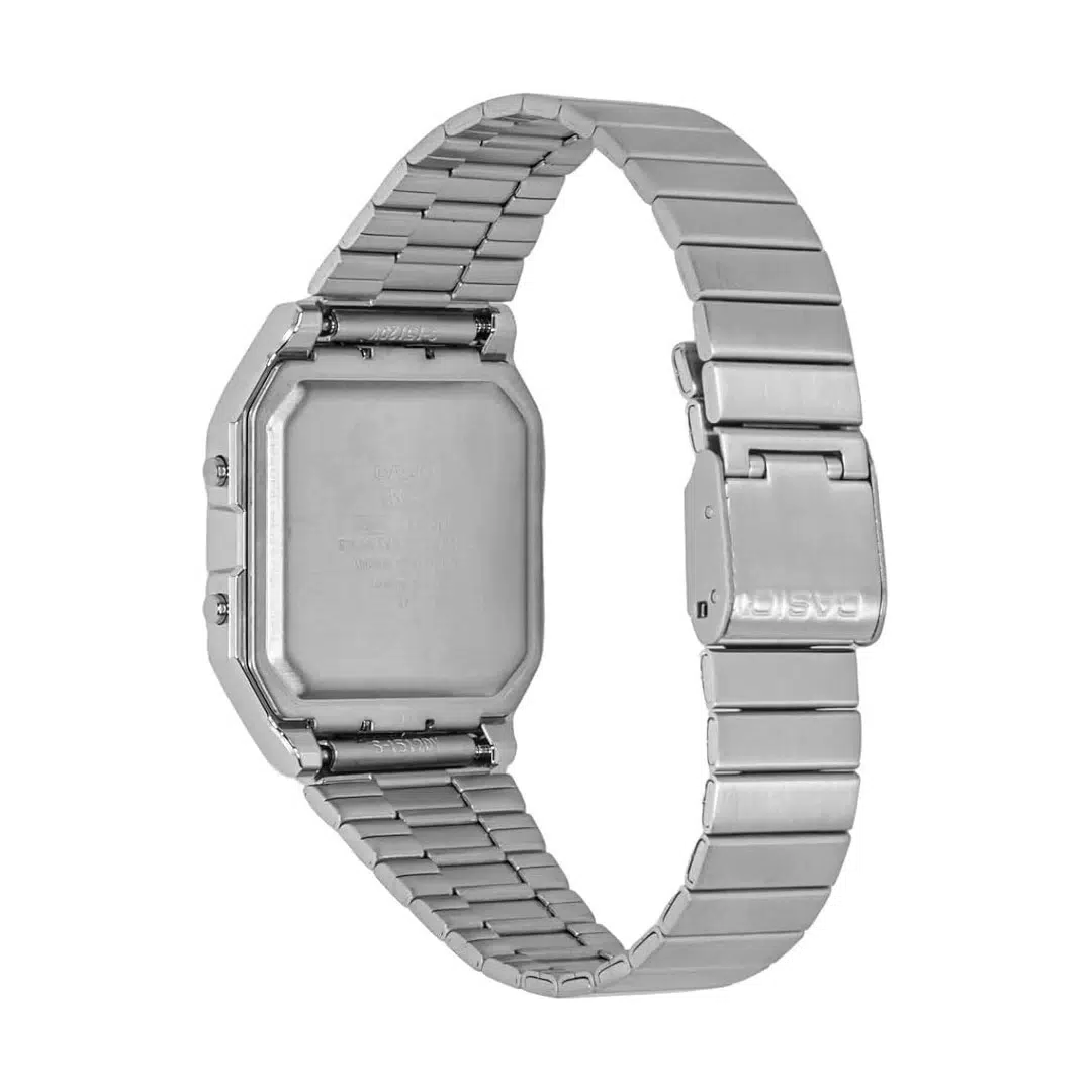 این ساعت با قابی از جنس رزین و صفحه نمایش آنالوگ و دیجیتال، از استایل دهه ۸۰ الهام گرفته و با امکانات مدرن ترکیب شده است.