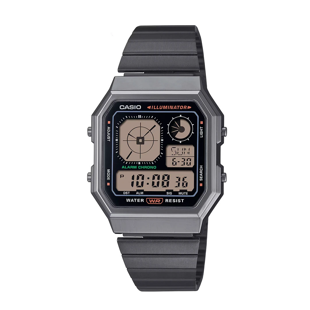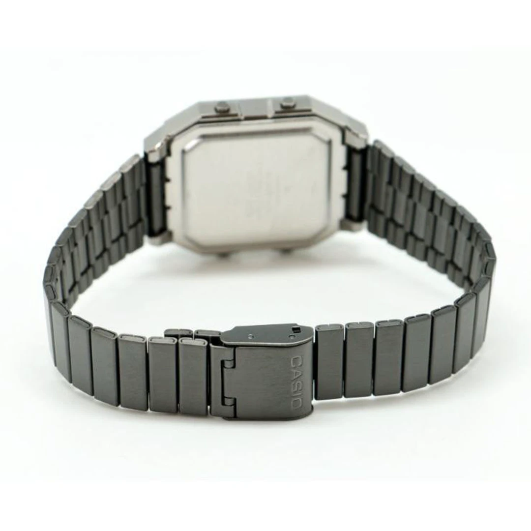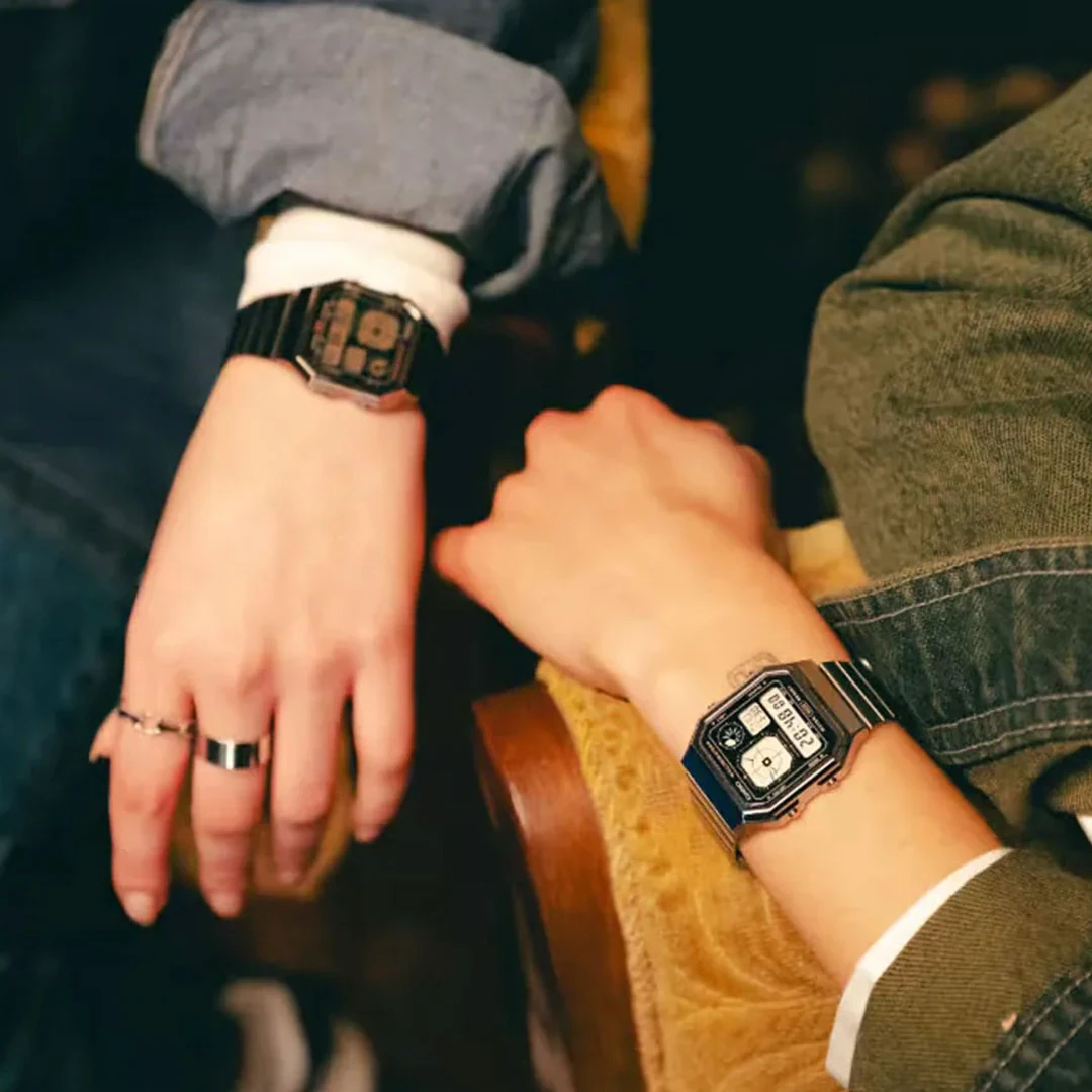 این ساعت با قابی از جنس رزین و صفحه نمایش آنالوگ و دیجیتال، از استایل دهه ۸۰ الهام گرفته و با امکانات مدرن ترکیب شده است.