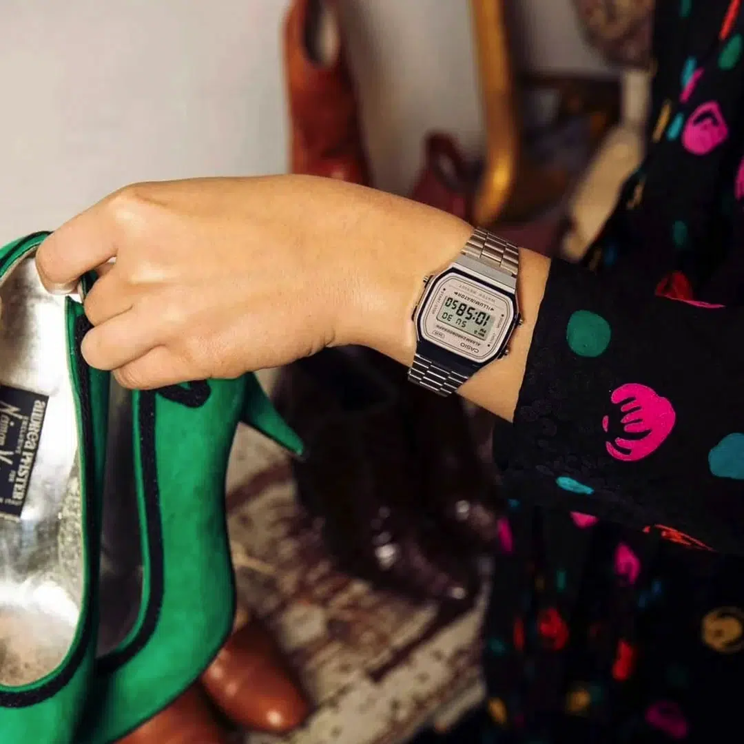 این ساعت با قابی از جنس رزین و صفحه نمایش آنالوگ و دیجیتال، از استایل دهه ۸۰ الهام گرفته و با امکانات مدرن ترکیب شده است.