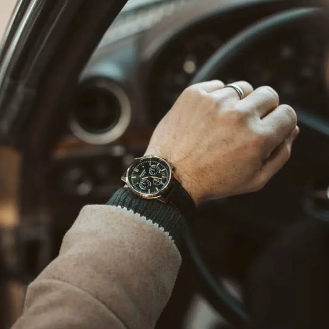 – بند قوی و شیک از جنس چرم با قفل ایمنی برای راحتی و استحکام بیشتر. - کرونومتر:
